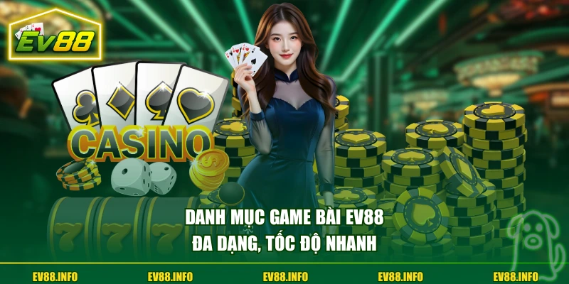 - Danh mục game bài EV88 đa dạng từ Tiến lên, Mậu binh đến Bài cào, đáp ứng nhiều phong cách chơi khác nhau, từ giải trí nhẹ nhàng đến những tựa game đòi hỏi tư duy chiến thuật